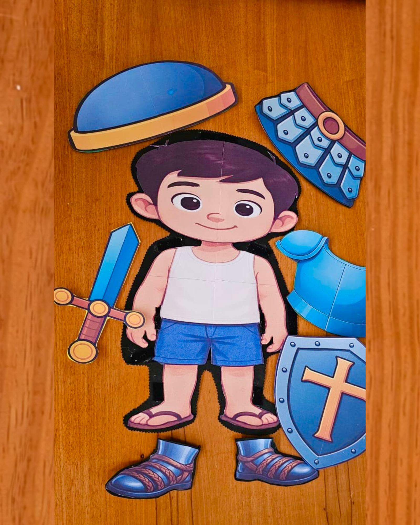 Ideal para trabalhar temas como proteção espiritual, obediência, fé, verdade, salvação, identidade em Cristo, resistência ao pecado e crescimento espiritual desde a infância.