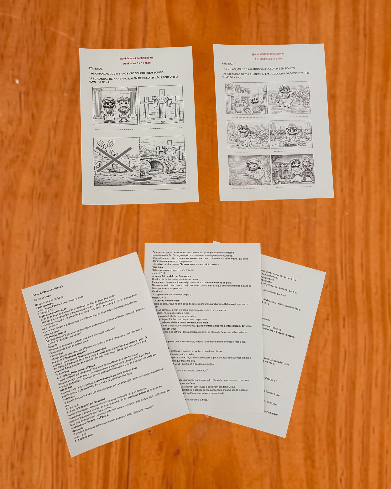Nesta ministração, as crianças aprendem que a Páscoa tem origem na história bíblica da libertação do povo de Israel no Egito, quando o sangue do cordeiro nas portas protegia as famílias. Esse acontecimento apontava para algo ainda maior: Jesus Cristo, o verdadeiro Cordeiro de Deus.